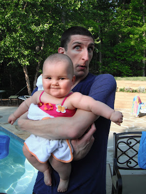- She had her first dip in the pool, for those who hadn't heard. She didn't love it at first, but me thinks she will be quite the water baby.